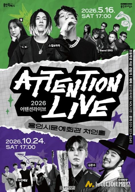용인문화재단은 용인시문예회관 처인홀에서 청년층을 주요 대상으로 한 라이브 공연 브랜드 '2026 어텐션 라이브'를 상·하반기 두 차례에 걸쳐 개최한다.