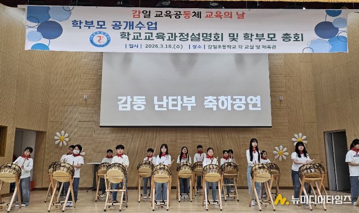 하남 감일초등학교는 3월 18일 2026학년도 ‘감일 교육공동체 교육의 날’을 맞아 학부모총회와 학교교육과정 설명회를 개최하고, 학생 자율동아리 ‘감동 난타부’의 축하 공연을 선보였다.
