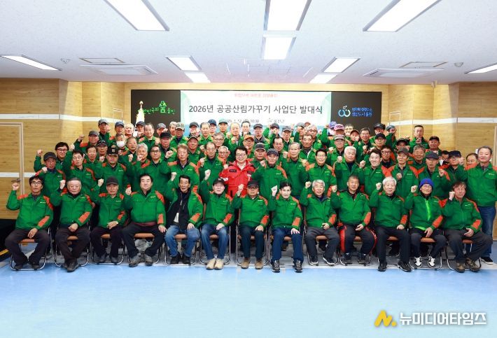 울진군은 지난 12일 군청 대회의실에서 근로자 80명을 최종 선발하고 2026년 공공산림가꾸기 사업단 발대식을 개최했다.