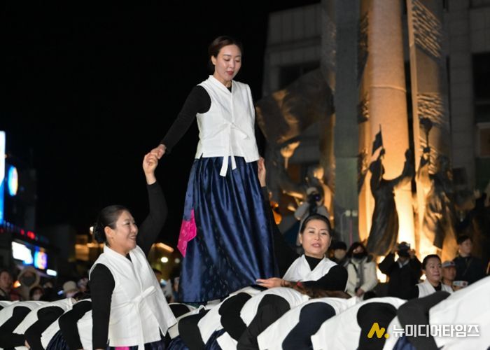 특히 전야제의 하이라이트인 ‘횃불 대행진’에는 수많은 군민과 관광객이 직접 횃불을 들고 영해 시가지를 행진해 107년 전 영해 장터를 가득 메웠던 뜨거운 함성을 몸소 재현하며 깊은 감동을 선사했다.