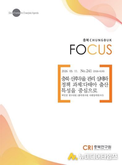 충북연구원(CRI, 원장 김영배)의 박민정 연구위원은 정책정보지 '충북 FOCUS' 제241호를 통해 충북 산후우울 관리 실태를 진단하고, 다태아 출산 특성을 반영한 정책 과제를 제시했다.