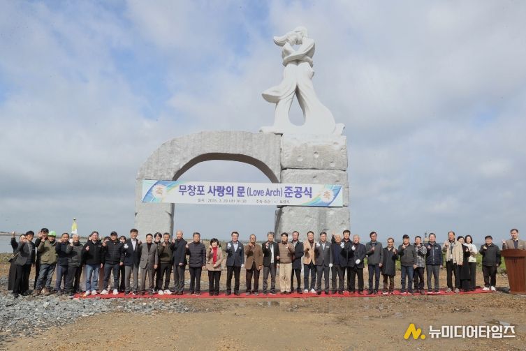 조형물의 작품명은 국민 참여를 통해 선정된 ‘무창포 사랑의 문(Love Arch)’으로, 석대도와 육지를 잇는 바닷길의 관문이라는 상징성을 담고 있다.