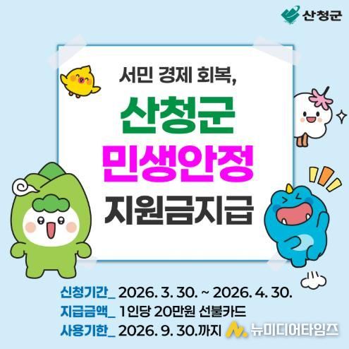 이번 지원금은 '산청군 민생안정지원금 지원 조례'에 근거해 추진되며, 기준일 2025년 12월 31일부터 신청일까지 산청군에 계속해서 주민등록을 두고 있는 군민 대상이다.