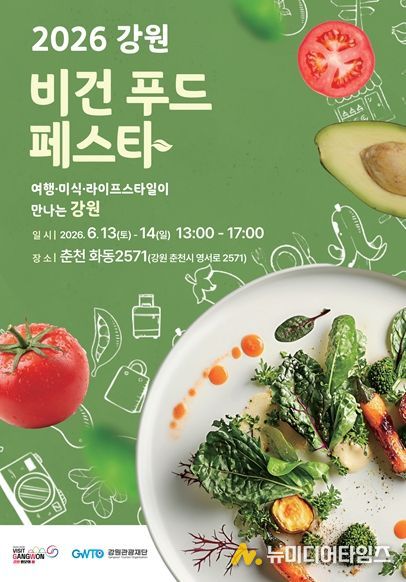 한편 「2026년 강원 비건 푸드 페스타」는 6월 13일부터 14일까지 춘천 먹거리복합문화공간 화동2571에서 개최될 예정이며, 비건 음식 체험과 다양한 행사를 통해 지속 가능한 먹거리 문화 확산에 기여할 계획이다.