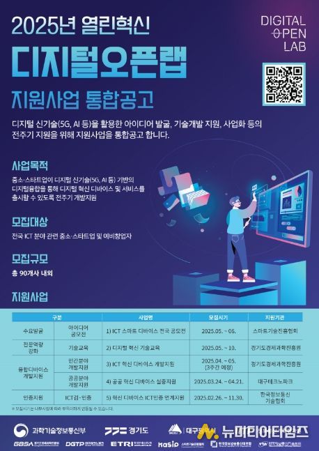 신청 대상은 경기도에 사업장을 둔 중소기업 또는 스타트업이다. 디바이스나 관련 서비스 개발 역량을 보유한 기업이라면 열린혁신 디지털 오픈랩 공식 누리집을 통해 온라인으로 신청할 수 있다.