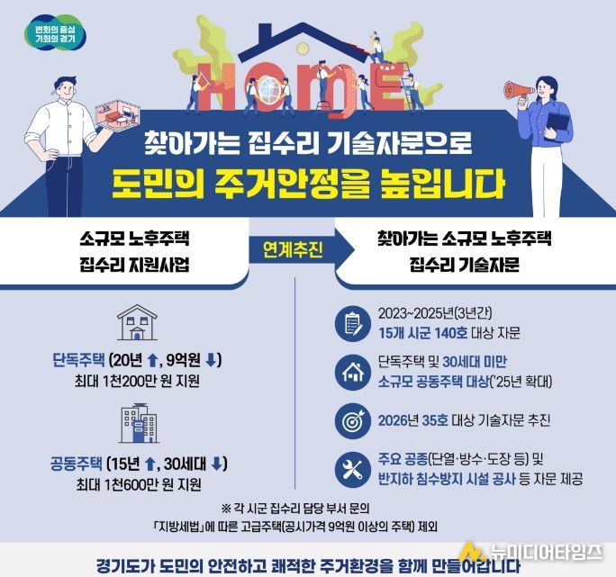 경기도가 소규모 노후주택에 거주하는 도민들의 집수리 고민을 덜어주기 위해 찾아가는 무료 기술자문을 올해는 35곳에서 추진한다.