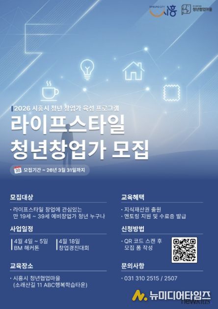 시흥시는 ‘2026 청년 창업가 육성 프로그램’의 일환으로 라이프스타일 분야 예비 청년창업가를 대상으로 실전형 창업 프로그램인 ‘창업 해커톤’과 ‘창업 경진대회’를 운영하고, 오는 3월 31일까지 참가자 30명을 모집한다.