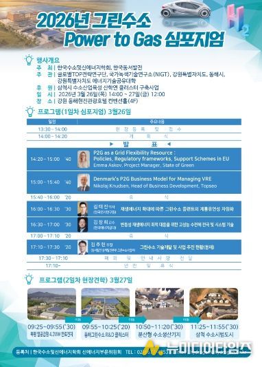 동해시가 3월 26일부터 27일까지 이틀간 현진관광호텔 및 수소산업 현장 일원에서 '제5회 그린수소 P2G(Power to Gas) 심포지엄'을 개최한다.