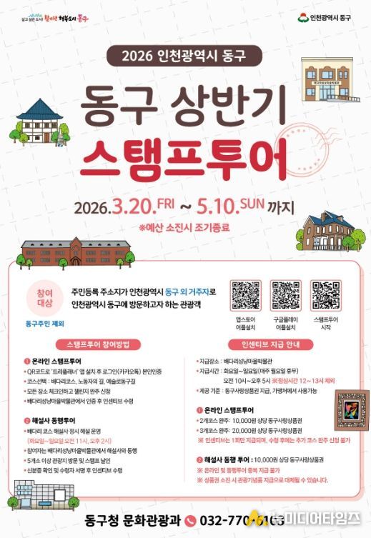 인천 동구는 3월 20일~5월 10일까지‘2026년 동구 상반기 스탬프투어’를 운영한다고 밝혔다.