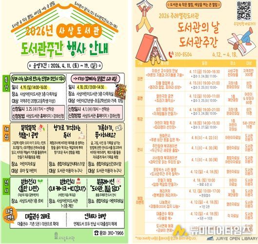 부산 사상구는 ‘도서관의 날(4월 12일)’과 ‘도서관 주간(4월 12일~18일)’을 맞아 사상도서관과 주례열린도서관에서 독서 문화 행사를 운영한다.