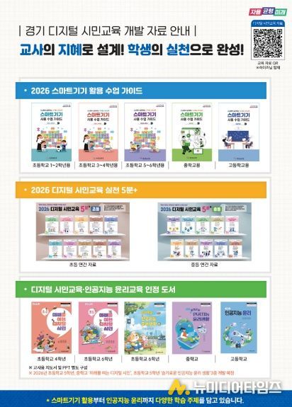 경기도교육청이 교사의 주도적 수업 설계와 학생 실천 중심 학습 지원을 위한 ‘2026 경기 디지털 시민교육 개발 자료’를 보급한다.