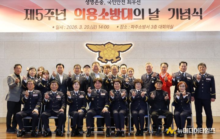파주소방서는 2026년 3월 20일 오후 2시 파주소방서 3층 대회의실에서 '제5주년 의용소방대의 날' 기념식을 개최했다. 이번 행사는 지역 사회를 위해 자발적으로 소방 활동에 헌신해 온 의용소방대원들의 봉사와 희생정신을 기리기 위해 마련됐다. 소방공무원, 의용소방대원, 지역 내외빈 등 약 180여 명이 참석했다.