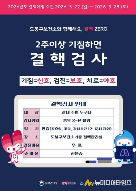 서울 도봉구가 제16회 결핵예방의 날(3월 24일)을 맞아 이달 22일부터 28일까지 결핵예방주간을 운영한다.