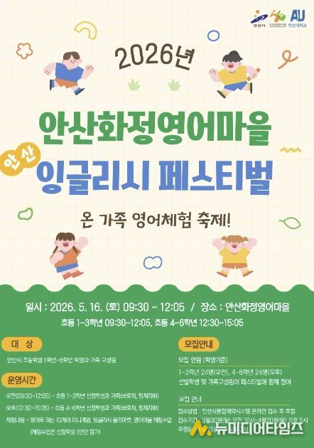 안산시가 설립하고 안산대학교가 운영하는 안산화정영어마을은 ‘온 가족 영어체험 축제!’를 주제로 ‘안산 잉글리시 페스티벌’을 운영한다고 24일 밝혔다.