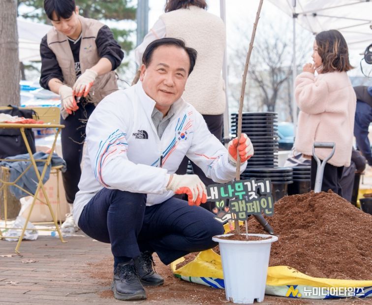 이어 오후 12시 30분부터 맑음터공원 에코리움에서 열린 ‘내 나무 갖기’ 캠페인에서는 사전 신청한 시민 600명을 대상으로 감나무, 대추나무, 체리, 블루베리 묘목을 배부했다. 이를 통해 시민들이 일상 속에서 녹색생활을 실천하고 온실가스 감축에 동참할 수 있는 계기를 마련했다.