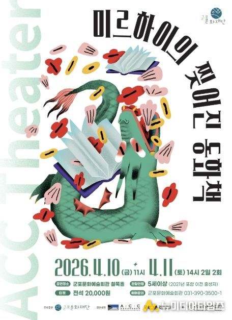 군포문화재단은 어린이와 가족이 함께 관람할 수 있는 공연 '미르하이의 찢어진 동화책'을 4월 10일~11일 군포문화예술회관 철쭉홀에서 개최한다고 밝혔다. 이번 공연은 2026 국립아시아문화전당재단 어린이 공연 유통 공모사업의 일환으로, 국립아시아문화전당(ACC) 창·제작 어린이 공연을 지역에 소개하기 위해 마련됐다.