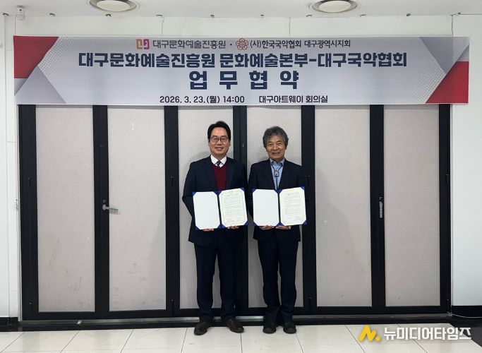 업무협약 후 양 기관은 ▲대구아트웨이 기획공연 행사 진행을 위한 공연예술가 연계 협력 ▲지역예술인 활동 기반 마련을 위한 공연 공간 조성 ▲시민 문화향유 행사 공동 기획 등을 추진한다.
