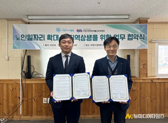 이천시는 이천시니어클럽이 2026년 신규 노인일자리 사업으로 장애인 지원 사업을 추진하고, 3월 23일 이천시장애인재활근로작업장과 업무협약을 체결했다고 밝혔다.