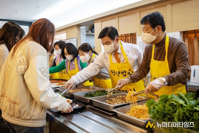 서울 동대문구 경희대 정문 옆 연화사 공양간에 점심시간을 앞두고 대학생들이 하나둘 모여들었다. 수업을 마친 학생들이 줄을 서자 사찰 안은 금세 북적였다. 스님들과 자원봉사자들이 분주히 음식을 나르고, 공양간 앞에서는 학생들끼리 “오늘 메뉴가 뭐냐”며 웃음 섞인 대화를 주고받았다. 그 줄 앞에 이필형 동대문구청장도 섰다. 학생들에게 직접 음식을 건네며 “밥 잘 챙겨 먹고, 학업과 미래 준비도 힘내라”고 말을 건넸다. 이 구청장은 연화사 ‘청년밥心’ 현장에서 배식자로 참여해 대학생들을 격려했다.