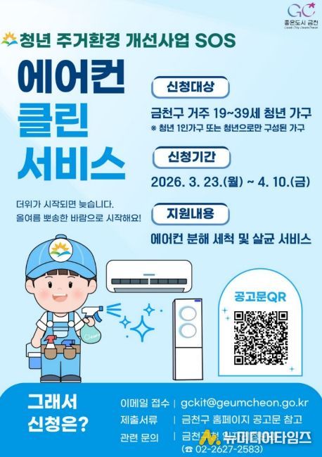 금천구는 여름철을 앞두고 청년가구의 쾌적한 생활환경 조성을 위해 ‘에어컨 클린서비스’ 사업을 추진한다고 밝혔다.