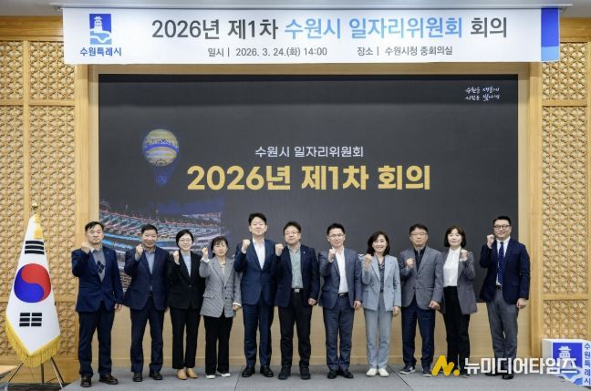 수원시는 24일 중회의실에서 김현수 제1부시장 주재로 ‘2026년 수원시 일자리위원회 제1차 회의’를 열고, ‘2026년 일자리정책 추진계획(안)’을 심의·자문했다. 또 일자리위원회 위원 14명을 위촉했다.