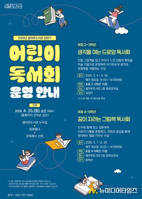 원주시 샘마루도서관은 오는 5월부터 6월까지 관내 어린이를 대상으로 ‘상반기 어린이 독서회’을 운영한다.