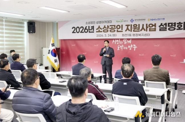 양주시가 지난 24일 회천1동 행정복지센터에서 고물가, 고금리, 소비심리 위축 등으로 인해 경영 애로를 겪는 관내 소상공인의 경쟁력 강화를 위해 ‘2026년 소상공인 지원사업 설명회’를 개최했다.