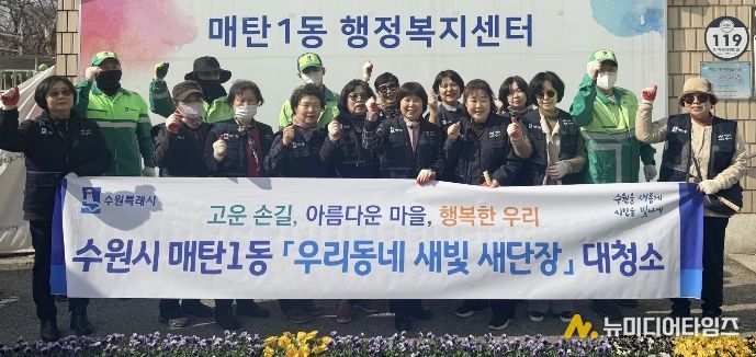영통구 매탄1동 행정복지센터는 지난 24일, '우리동네 새빛 새단장' 사업의 일환으로, 새봄맞이 대청소 및 초화 식재 활동을 실시했다.