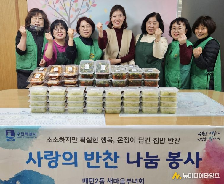 이날 매탄2동 새마을부녀회는 열무김치, 두부조림, 무나물 등 신선하고 다양한 반찬들을 손수 만들어 지역사회 소외계층 30세대에 전달했다.