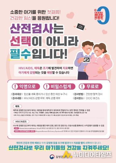 이미 임신 중인 여성을 위한 ‘임신 초기 산전 검사’는 B형간염(항원, 항체), 매독, 에이즈, 전혈구 검사 포함 4종을 연중 실시한다. 예비맘 검사는 신분증을, 임신 초기 검사는 신분증과 임신확인증을 지참해 보건소 모자보건실로 방문하면 된다.