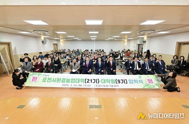 포천시는 지난 24일 포천시농업기술센터 대강당에서 신입생과 내빈 등 100여 명이 참석한 가운데 ‘2026학년도 포천시환경농업대학(22기) 및 대학원(9기) 입학식’을 개최했다.
