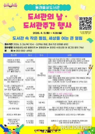 동래구 관계자는 “이번 행사를 통해 일상 속에서 지식의 즐거움을 발견하고, 도서관을 통해 다양한 주민들이 책으로 소통하는 따뜻한 봄날의 축제가 되기를 바란다”라고 말했다.