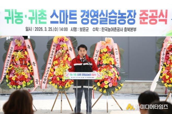 충북 보은군은 25일 탄부면 임한리 일원에서 ‘귀농·귀촌 스마트 경영실습농장’ 준공식을 개최하고, 스마트농업 확산과 청년농업인 육성을 위한 기반을 마련했다.