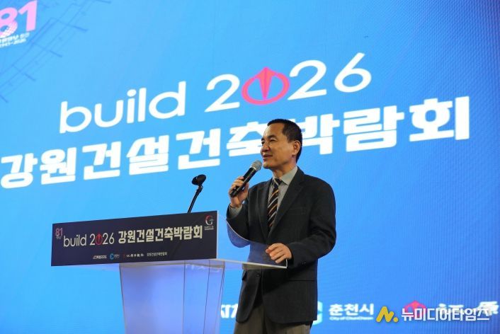 김진태 강원특별자치도지사는 ‘2026 강원건설건축박람회’ 개막식에서 최근 불안한 중동 정세에 대응해 도내 건설‧건축 기업 지원을 위한 특별 대책 마련을 지시했다고 밝혔다.