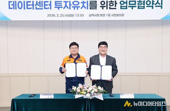 삼척시와 삼척블루파워는 25일 삼척시청 시민회의장에서 “데이터센터 투자유치를 위한 업무협약(MOU)”을 체결했다.