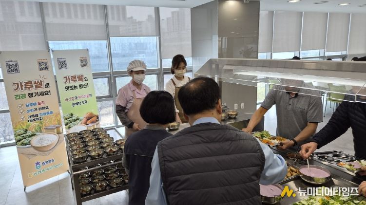 충북도는 25일 충북도, 충북교육청, 충북경찰청, 충북농협본부, 시군 등 도내 15개 기관(구내식당)이 동시 참여하는 ‘충북쌀(가루쌀) 소비촉진 행사’를 추진했다.
