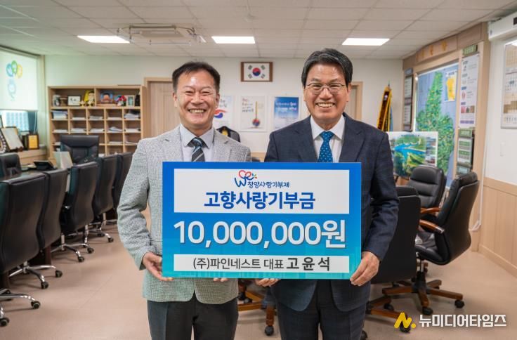 청양군은 지난 25일 ㈜파인네스트 고윤석 대표가 고향사랑기부금 1천만 원을 기탁하며 고향에 대한 깊은 애정을 다시 한번 전했다고 밝혔다.