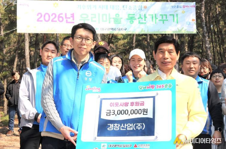 경창산업㈜은 달서구가 주최한 ‘우리마을 동산가꾸기 나무심기 행사’에 직원들로 구성된 C&S봉사단이 참여했으며, 이와 함께 후원금도 전달하며 지역사회 나눔 실천에 동참했다.