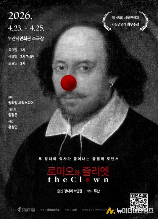 (재)부산문화회관(대표이사 차재근)은 오는 4월 23일부터 25일까지 3일간 부산시민회관 소극장에서 연극 '로미오와 줄리엣 The Clown〉을 선보인다. 이 작품은 2024년 제45회 서울연극제 자유경연작 최우수상 수상작으로 예술성과 완성도를 동시에 인정 받으며 관객과 평단의 호평을 받은 작품이다.