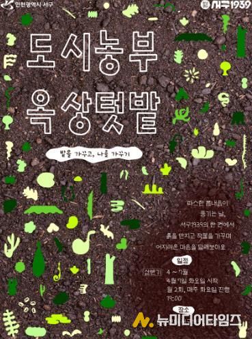 인천광역시 서구는 청년들의 건강한 여가활동과 커뮤니티 형성을 지원하기 위한 ‘도시농부, 옥상텃밭’ 프로그램의 상반기 참여자를 모집한다고 밝혔다.