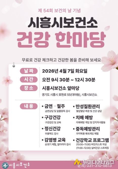 시흥시가 오는 4월 7일 ‘제54회 보건의 날’을 맞아 시흥시보건소 앞마당에서 시민의 질병 예방과 건강 인식 제고를 위한 ‘건강 한마당 홍보관’을 운영한다.