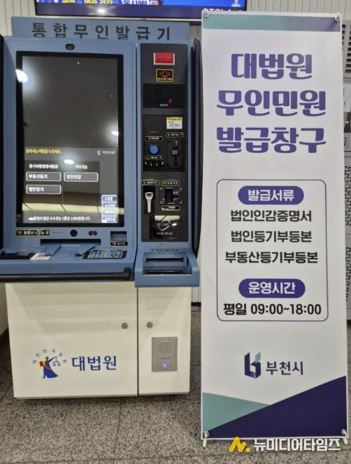부천시는 3월 27일부터 시청 민원실에 대법원 통합무인발급기를 설치하고 운영을 시작한다.