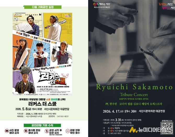 정동호 서산시 문화시설사업소장은 “이번 트리뷰트 콘서트는 류이치 사카모토의 음악을 사랑해 온 시민들에게 깊은 위로와 감동을 전하는 시간이 될 것”이라며 “앞으로도 세계적 예술가의 작품을 조명하는 수준 높은 기획공연을 지속적으로 선보이겠다”라고 밝혔다.