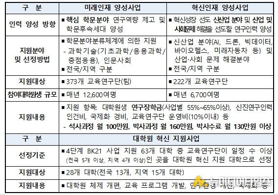 4단계 두뇌한국(BK)21 사업(2020년~2027년)은 세계 수준의 연구중심대학 육성과 대학원 혁신을 목표로 운영되고 있으며, 매년 약 2만 명의 대학원생과 신진 연구자를 지원하고 있다.