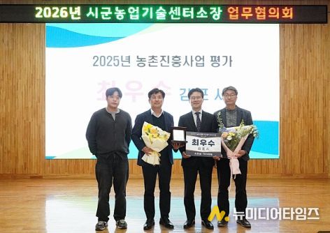 김포시농업기술센터(소장 이재준)는 경기도농업기술원에서 개최한 2025년 농촌진흥사업 평가에서 우수기관 분야 ‘최우수상’, 지도정책 분야 ‘우수상’을 수상했다. 또한, 농촌진흥사업 평가에서 유공자 1명(도지사) 선정돼, 지난 3월 26일 경기도로부터 기관 표창 및 유공 공무원 표창을 받았다.