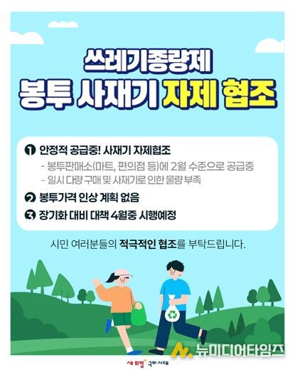 시는 봉투 수급 상황을 실시간으로 관리하기 위해 재고량을 매일 점검하고 있다. 동시에 판매소별 공급량을 지난 2월 수준으로 유지해 특정 지역이나 일부 판매소에 수요가 집중되는 현상을 차단하고 있다.