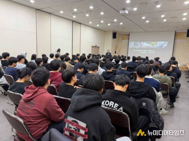 이승열 교수는 “태백에서 꿈꾸고 세계로 나아가자!”를 주제로 국내·외 항공산업의 현황과 주요 직무를 소개하고, 항공 분야 진출을 위한 진로 설계 방향과 준비 과정을 설명했다.