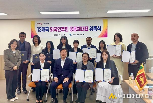 구미시가 외국인 주민 증가에 대응해 소통 체계를 강화한다. 시는 지난 27일 ‘13개국 외국인주민 공동체 대표 위촉식’을 열고 각국 대표 13명에게 위촉장을 수여했다. 등록 외국인 수가 8,599명으로 전년 대비 약 14% 증가한 가운데, 외국인 정책의 실효성을 높이기 위한 현장 중심 대응에 나선 것이다.