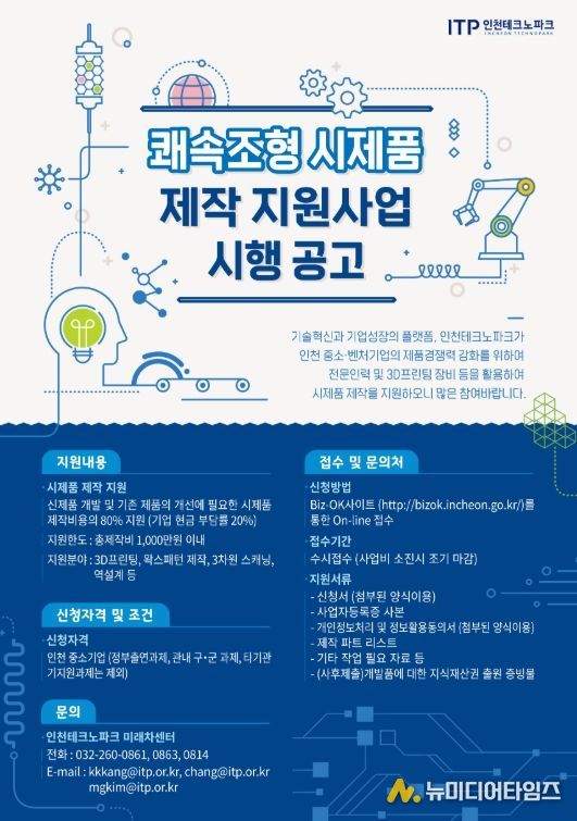 한편, 해당 사업은 인천시 지원을 통해 지난해 56개 중소기업을 대상으로 총 163건의 시제품 제작을 지원하며 중소기업의 개발 비용 절감과 제품 조기 상용화 성과를 거둔 바 있다.