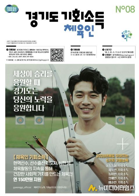 지원 대상은 도 공고일(2026. 3. 30.) 기준 군포시에 주민등록을 두고, 경기도에서 체육 활동을 하고 있는 만 19세 이상 체육인(2007. 12. 31. 이전 출생자)으로 ▲현역 선수 ▲지도자 ▲심판 ▲선수관리자 ▲행정 종사자 중 개별요건을 충족하고, 개인 월 소득인정액이 기준중위소득 120%(월 307만원) 이하인 경우 신청할 수 있다.